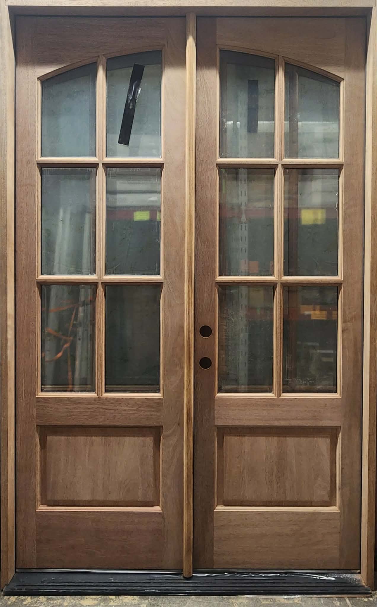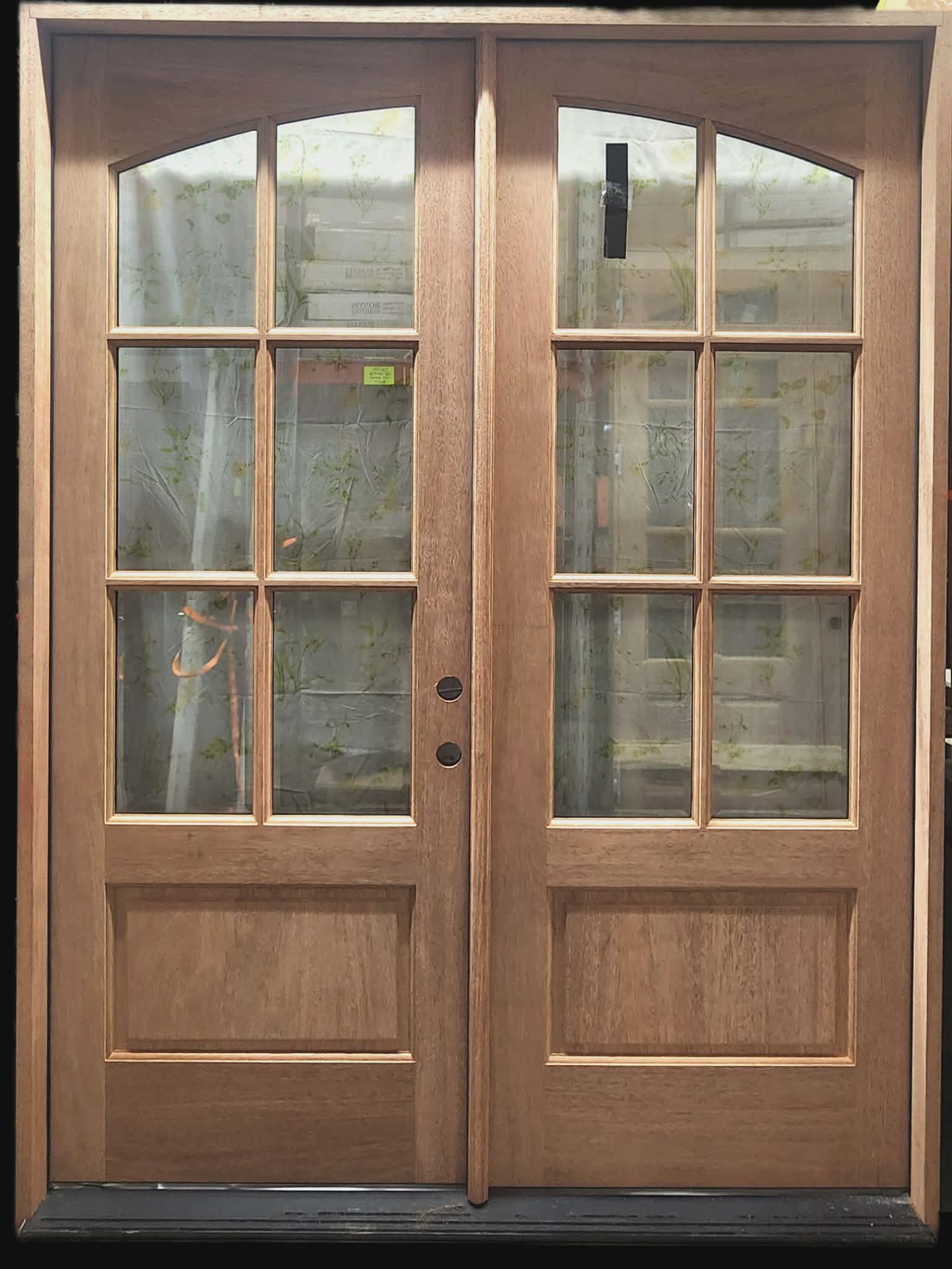 Double 30" 60" x 96" (62-1/8" x 98-1/2") 6 Lite clear Tempered Beveled glass Top Arched glass Both doors open $2,800 |